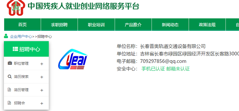 2019年8月21日,公司通过长春市残疾人服务中心的推荐作为中国残疾人就业创业网络服务平台的注册企业,公开向全社会招聘残疾人就业,拓宽残疾人招聘渠道。